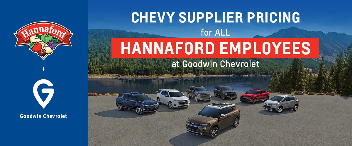 Hannaford employees are uniquely qualified and are eligible for the GM Supplier Discount Price, a special discounted price that's below the MSRP. This outstanding value can be applied to the purchase or lease of eligible new Chevrolet vehicles simply by using an authorization number and presenting it at Goodwin Chevrolet. Combine this discount with the most current offers to save even more this month.